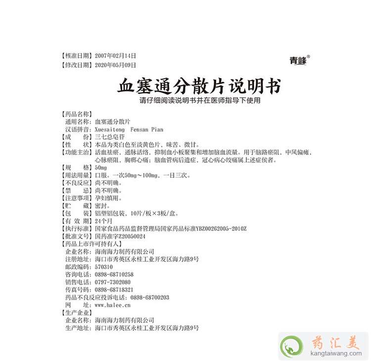 我想了解下青峰血塞通分散片說明書?