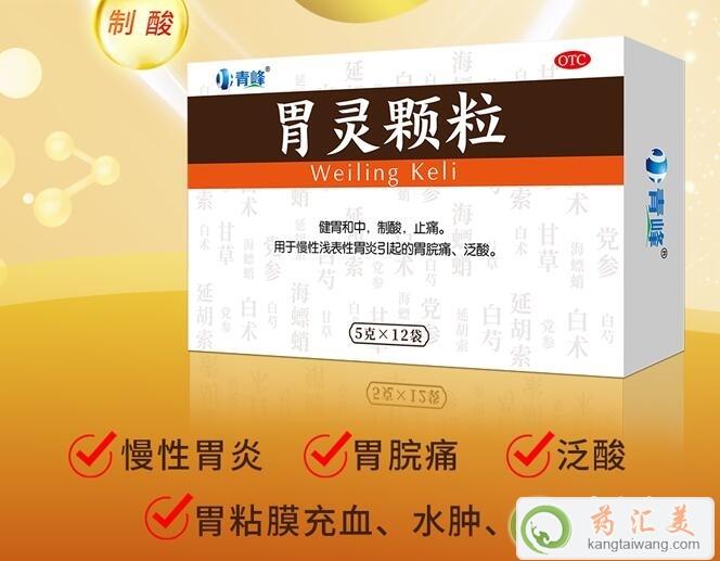1、胃靈顆粒,健胃和中,制酸,止痛。用于慢性淺表性胃炎引起的胃脘痛、泛酸。