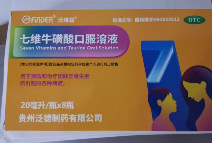 答七維;撬峥诜芤涸诤芏嗟胤剿幍、診所都有的銷售,七維;撬峥诜菏且豢罹S生素類非處方藥藥品口服液,用于預防治療因缺乏維生素所引起的各種病癥。七維牛磺酸口服溶液的說明書【成份…