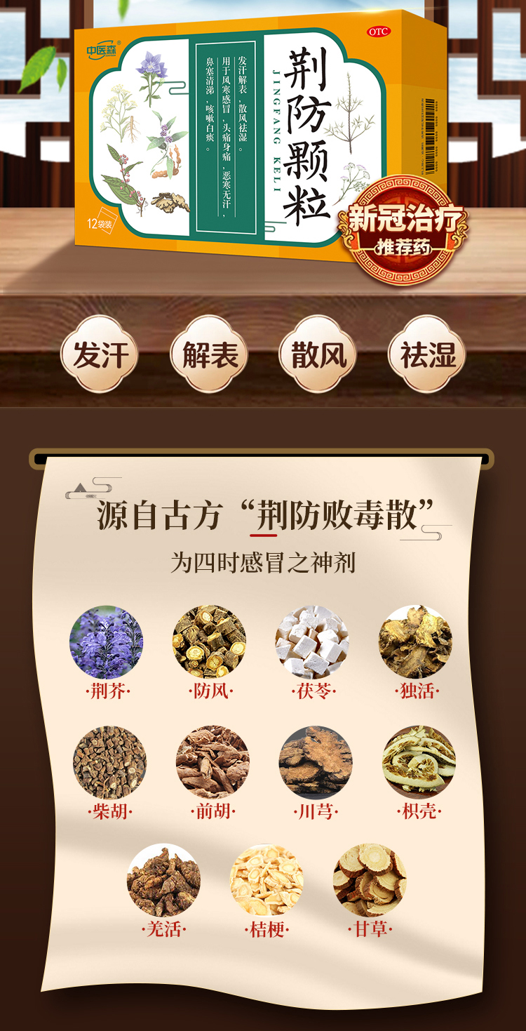 【商品成分】荊芥、防風、羌活、獨活、柴胡、前胡、川芎、枳殼、茯苓、桔梗、甘草。輔料為蔗糖