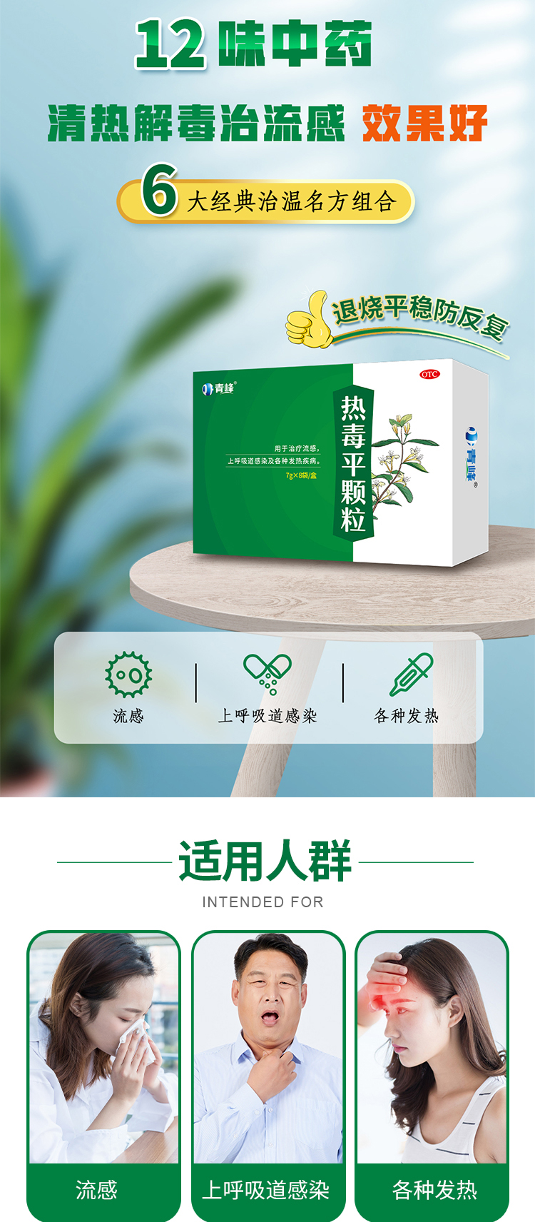 【功能主治】 清熱解毒。用于治療流感,上呼吸道感染及各種發熱疾病。