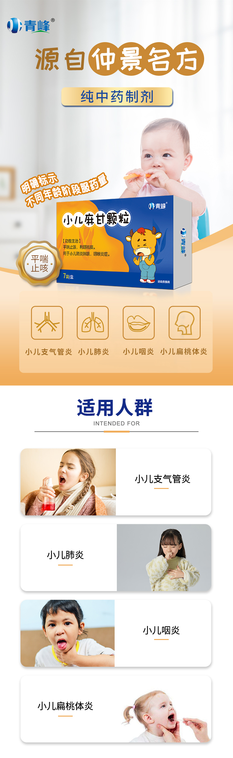 【功能主治】平喘止咳,利咽祛痰。用于小兒肺炎喘咳,咽喉炎癥。