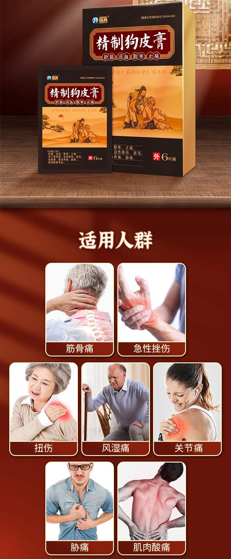 2、風濕疼痛:精致狗皮膏+風濕定膠囊片