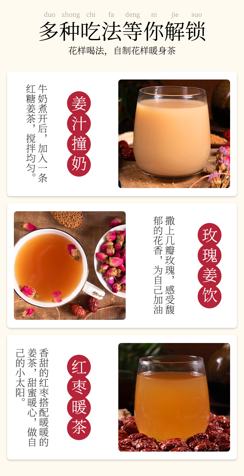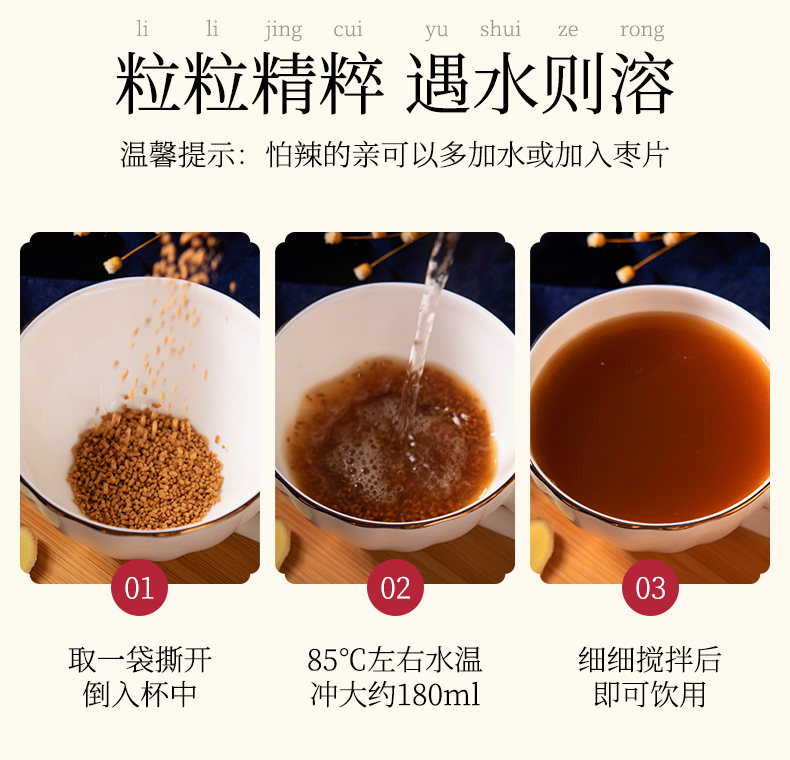 紅糖姜茶固體飲料主治:驅寒暖宮,改善氣色