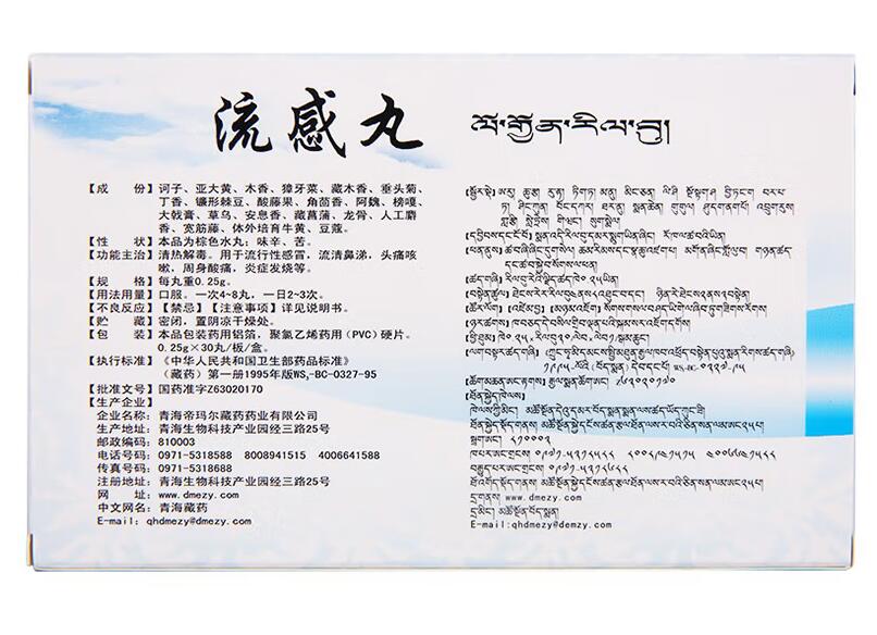 流感丸的成分有:訶子、亞大黃、木香、獐牙菜、藏木香、垂頭菊、丁香、鐮形棘豆、酸藤果、角茴香、阿魏、榜嘎、大戟膏、草烏、安息香、藏菖蒲、龍骨、人工麝香、寬筋滕、體外培育牛黃、豆…